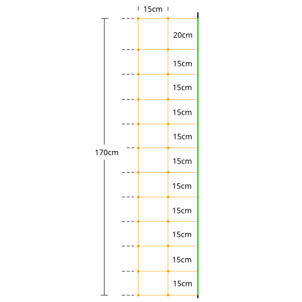 Elektromreža je izdelana iz 8 horizontalnih plastičnih vrvi. Spodnja je samo plastična, ostalih 7 je prepletenih s krom-nikelj vodniki, ki prevajajo elektriko. V kompletni mreži je 14 plastičnih količkov. Pri uporabi več mrež na enem pašniku, se med sabo zelo enostavno spajajo z že nameščenimi sponkami.