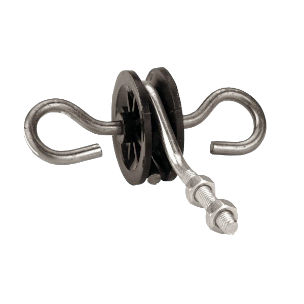 Vratni izolator z metričnim navojem M 6, dolžina vijaka 50 mm, dolžina navoja 30 mm. Uporablja se za prehod v ograjo ali iz nje.