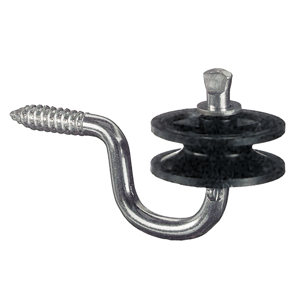 Kotni izolator se uporablja na vogalih in omogoča napeljavo elektro vrvi, elektro vrvic, da se v vogalu ne lomijo. Močen lesni vijak 8 mm.